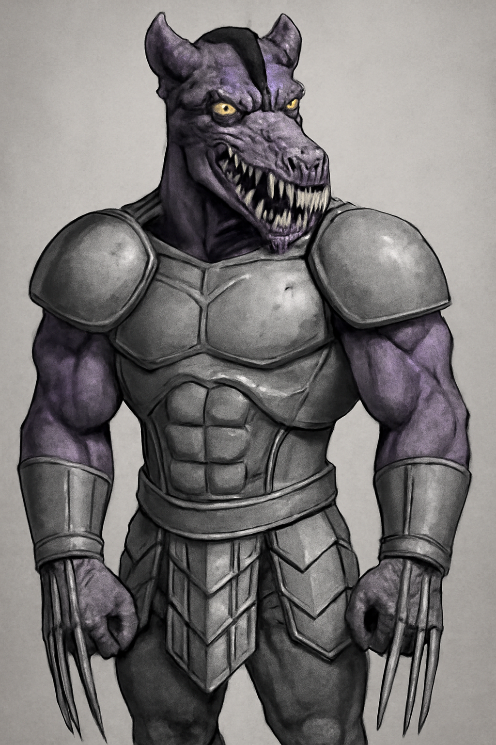 Psytonic is a fire-breathing, palladium-armor-wearing demon who is equipped with long metal blades on the tips of his hands. His hide is thick, and his armor is thicker, considering it is made of one of the toughest materials in all the land. His blades are sharp and can cut through flesh, steel, or even diamond with relative ease. Even if those last feats don't scare their foe, Psytonic's near-atomic breath of pure plasma sure will. Overall, his immense strength, blinding speed, and pyrotechnics sure make him a daunting foe, especially since he only fights on his home turf, a twisting, turning, & shifting labyrinth.