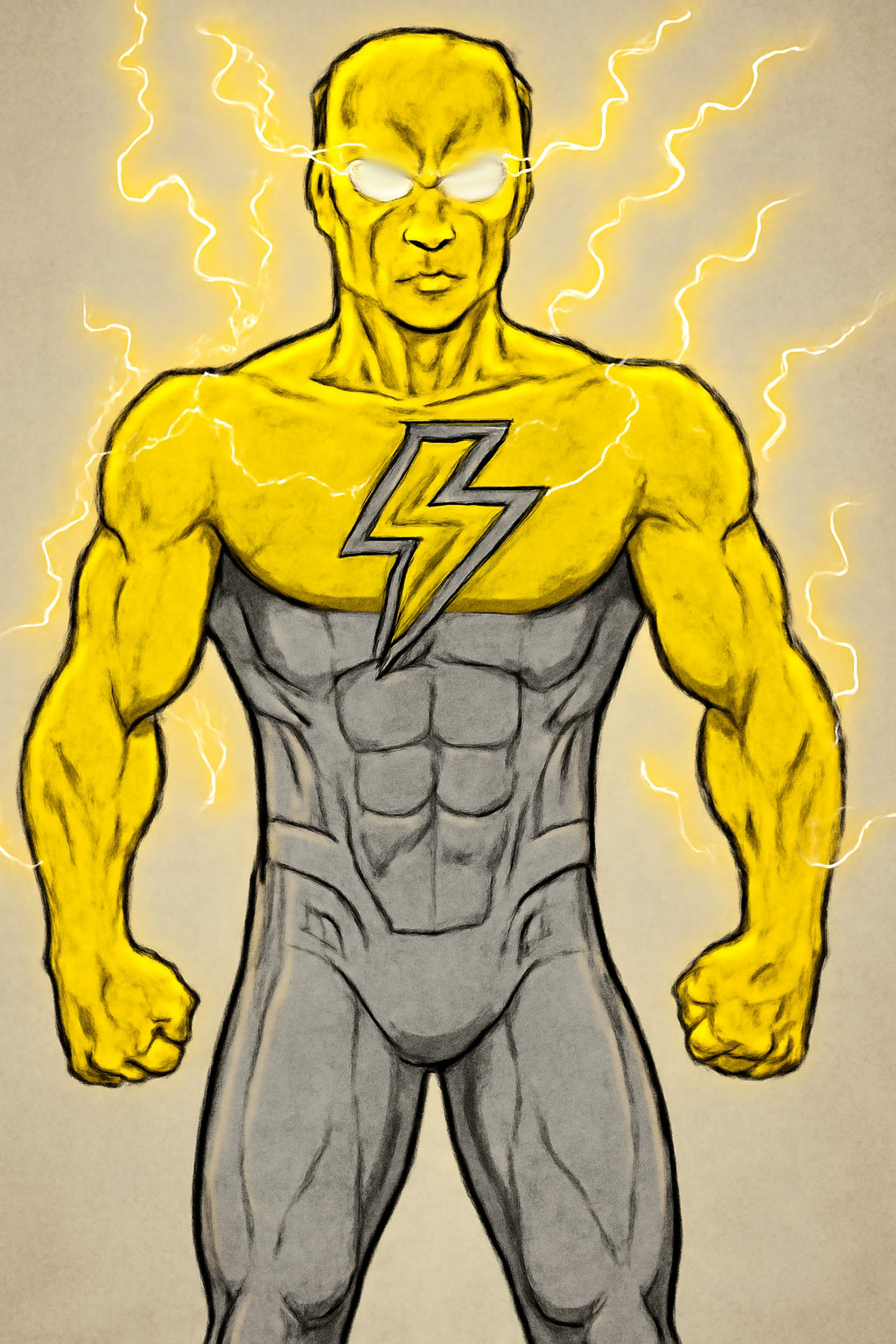But unfortunately for the serum's inventor, there was one major flaw. At the exact moment Andrew was hit by the serum, a bolt of lightning struck down upon the land, zapping Andrew's flesh. The combination of MV1 and the electric blast warped Andrew's body in an unimaginable way, transforming him into a man of both flesh and metal who could summon lightning by the mere force of his will.