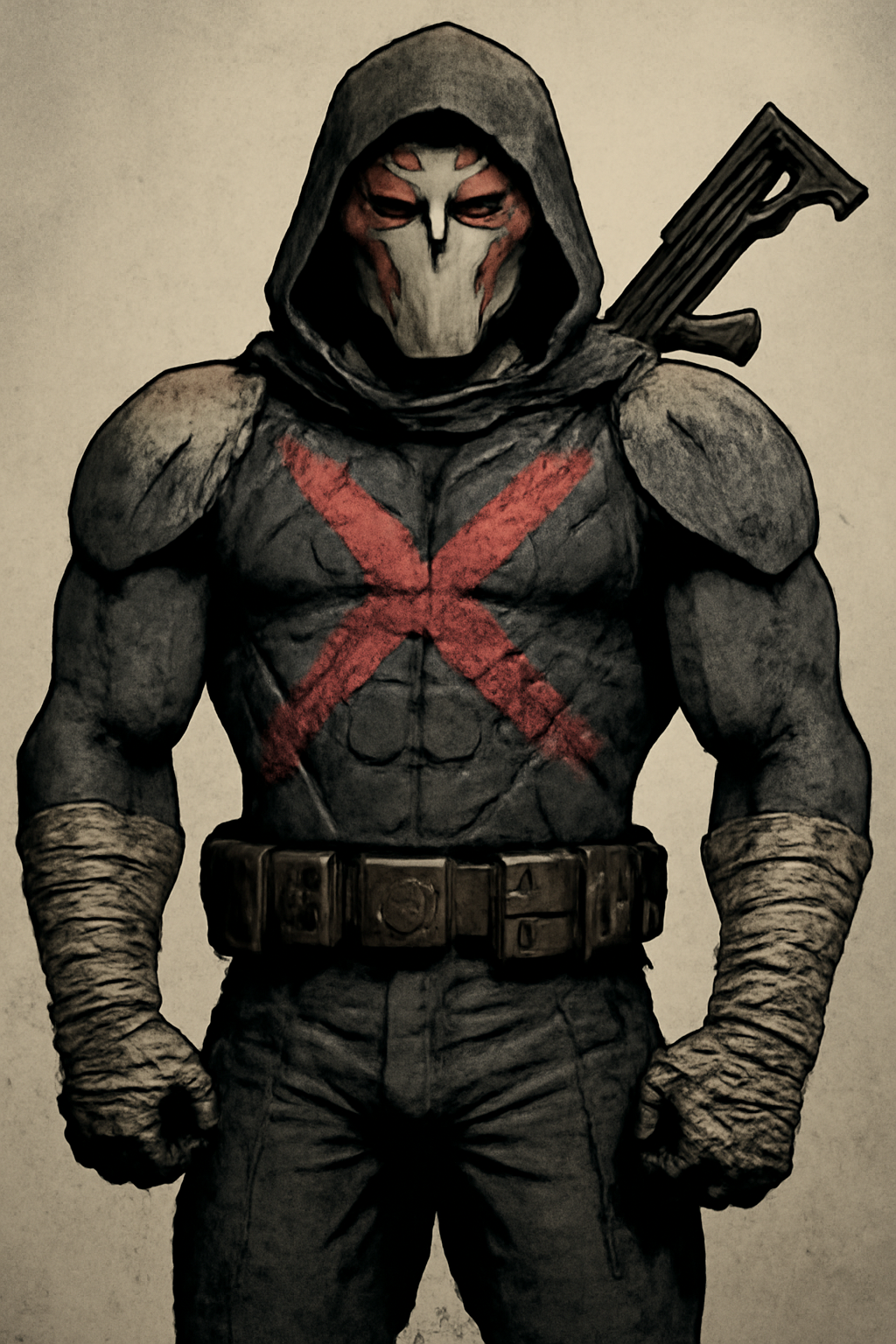 This section will probably be the easiest ever written for a character, as Vigilante-X has no powers. He is not even that strong, fast, or smart either; however, what he lacks in those things (aka everything else) he makes up in pure willpower. That and his dual-action pistols, bulletproof vests, and other technical gear give him a slight edge. Vigilante-X's yellow stat durability booster is derived from his strongest armor (which unfortunately also makes him quite sluggish).
